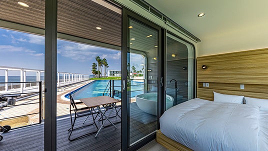 『自然と同期する』をコンセプトにした日本初の近未来デザインのトレーラーホテルが、富士山を望み相模湾に面した、都心から約60分の「リビエラ逗子マリーナ」、約80分の「リビエラシーボニアマリーナ」に2022年7月7日同時オープン。刻々と変化する幻想的なサンセットなど地球・宇宙を感じる非日常空間で、時間の移ろいを堪能いただくため前面ガラス窓を採用した客室は、全棟オーシャンビュー。プライベートテラスにはバーデプールやBBQセットを完備し、ドッグフレンドリールームも用意しています。セルフロウリュが可能な宿泊者専用のサウナを設け、海を眺めて「ととのう」時間を大切にしています。また、滞在や食事、アクティビティを通じて海や地球の循環・再生を体感し、サステナビリティも意識できるコンテンツをご提案。心の中にSPACEをつくりマインドを整え、そして人生のKEY POINTとなる時間を提供します。公式WEBサイト:https://www.riviera.co.jp/area/zushi/hotel/space-key-point/