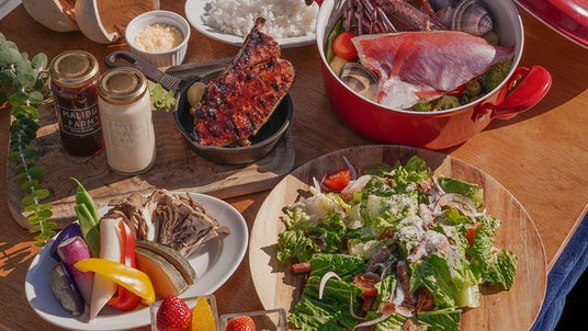 本宿泊プランでは、通常より2時間早い12時からアーリーチェックインが可能になり、22時間ロングステイを実現。チェックイン後は、プライベートテラスに特別に設えたこたつで身体を温めながら、ランチBBQをお楽しみいただけます。BBQメニューには骨付きスペアリブをはじめ、伊勢海老・金目鯛・蛤を贅沢に使用した魚介の旨味が凝縮したブイヤベースをご用意。地産地消の食材をふんだんに使い、身体の芯から温まる、冬ならではのメニューを厳選しました。滞在中はオーシャンサウナで“ととのう”贅沢なひとときもご堪能いただけます。