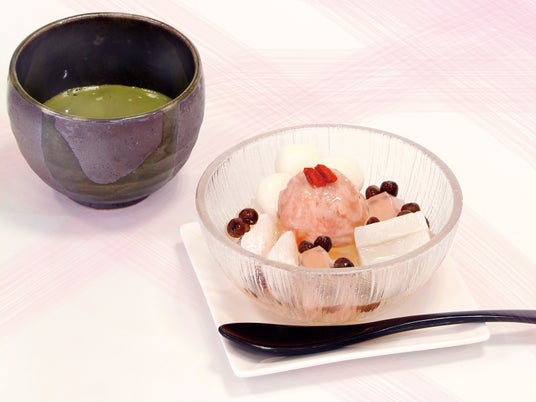 白玉、寒天、そして船橋屋の伝統を受け継ぐくず餅など、職人が丁寧に仕上げた素材の一つひとつが、なめらかさ・もっちり感・コリッとした食感をそれぞれに活かし、最後まで飽きずに楽しめる構成に。