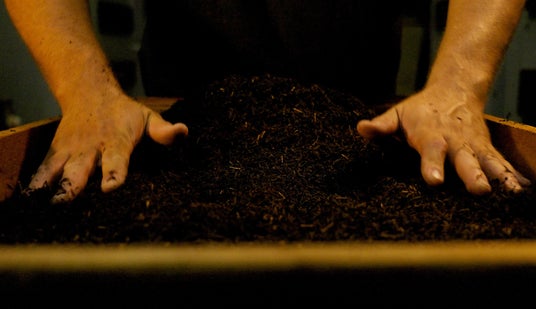 お茶作りで大事なことは「余計な事はあまりせず、自然に任せる」こと。「森の木々は、何もしなくても成長し、新芽を出すので、肥料も土の微生物たちの餌だと思っています」。