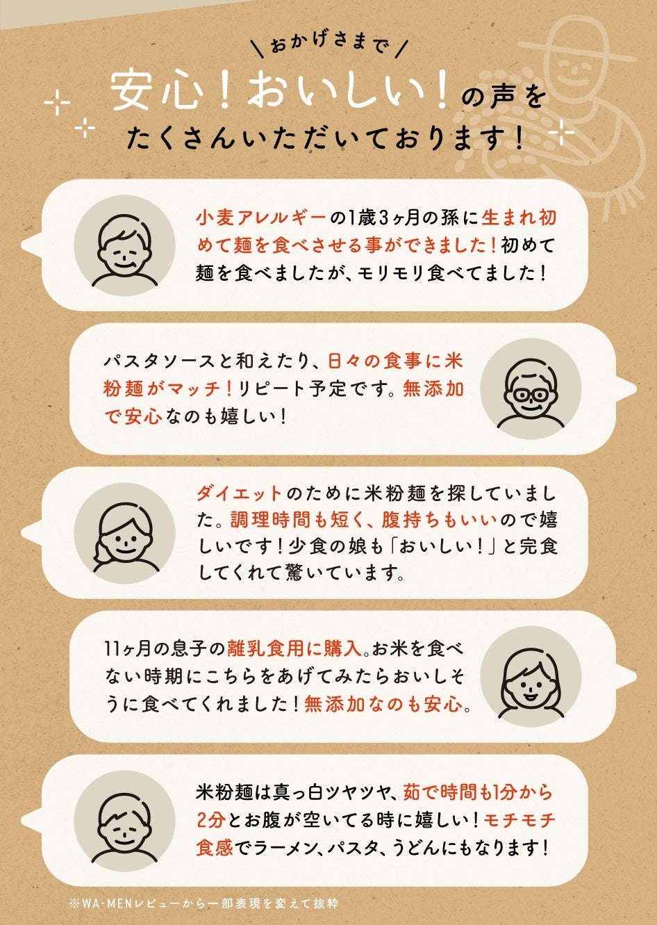 日本の田んぼを守り、農家の未来を支えたい。そんな熱い想いから生まれた米粉麺は、今では世代や体質を問わず、多くの方の日常に寄り添う一皿となりました。