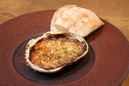バスク地方の伝統的なカニのグラタン料理、チャングーロ(Txangurro)。鳥取県産・松葉がにという最高峰の素材を用い、スペイン郷土料理の文脈で再構築しました。※各日限定5食