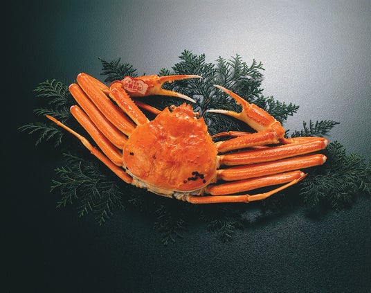 ▼鳥取県産 茹で紅ズワイガニ (税込6,000円)提供店:さくら蕎麦 小松庵 総本家 丸の内オアゾ店(手打ち蕎麦/丸の内オアゾ5階)