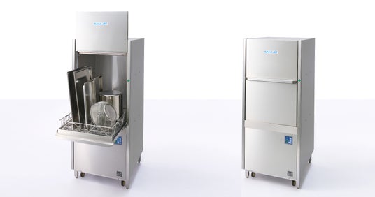 「サニジェット SD240」は従来の洗浄機と比べ、洗浄室の高さが800mmと広く大型の調理器具に対応。