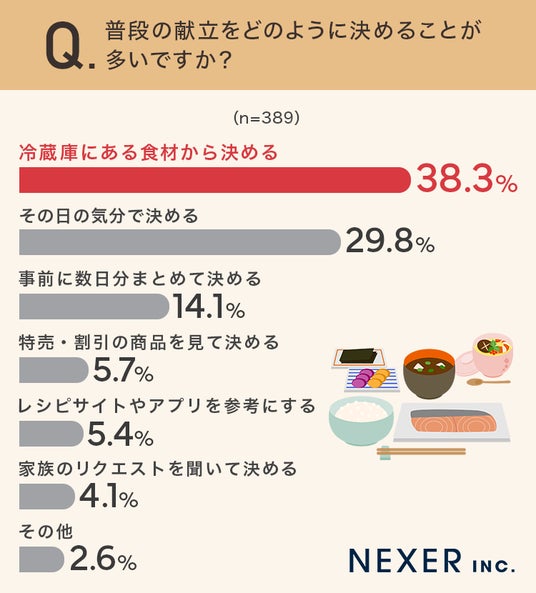 ■38.3%が「冷蔵庫にある食材から決める」と回答
