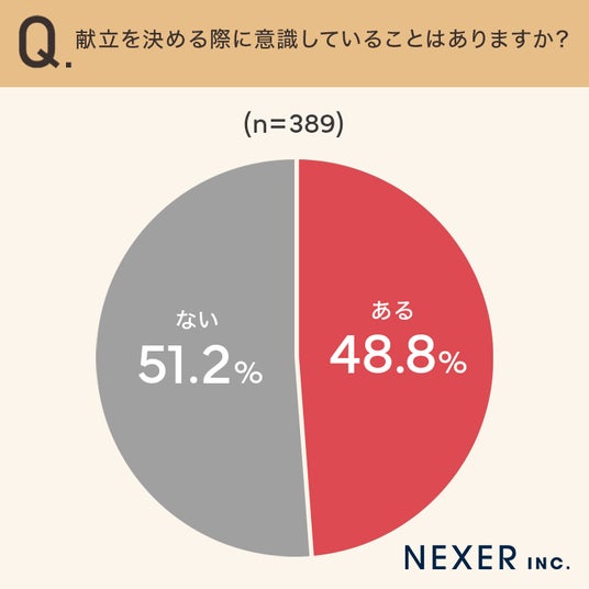 ■48.8%が献立を決める際に「意識していることがある」と回答