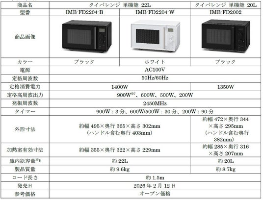 アイリスオーヤマ株式会社(本社:宮城県仙台市、代表取締役社長:大山 晃弘)は、ボタン操作一つであたため時間を短縮できる機能を搭載した「タイパレンジ 単機能 20L/22L」を2026年2月12日より全国の家電量販店やインターネットサイトを中心に順次発売(※2)します。