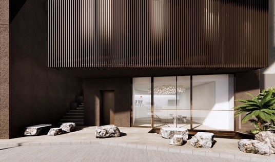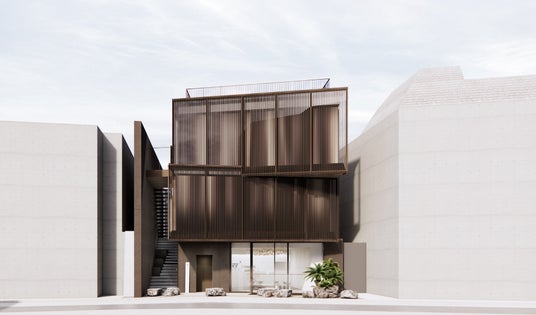 ファサードは、デジタル表現にあえてフィルターをかけることで、都市の情報やエネルギーを感覚的に変換する「境界」として設計しました。変化し続ける街並みに呼応しながら、建築そのものが移ろう風景として立ち現れます。内部では、光と影、素材の質感、香りや音といった要素をミニマムな構成の中で重ね合わせ、視覚だけでなく身体全体で感覚を澄ませる空間を構成しました。有機と無機のコントラストは、触覚、聴覚、嗅覚へと静かに波及していきます。