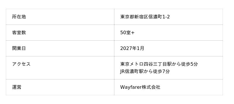 Wayfarer株式会社(本社:東京都港区虎ノ門、代表取締役:チュー・ウィンストン/小出ランス、以下「Wayfarer」)は、このたび「Arbor Yotsuya(アーバー 四谷)」の運営契約を締結したことをお知らせいたします。