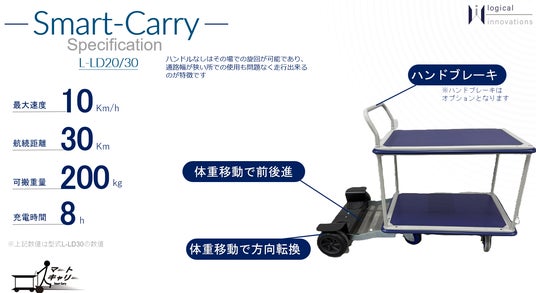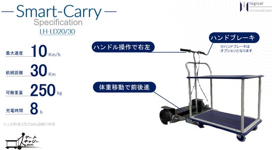 株式会社ロジカルイノベーションズ(本社:東京都渋谷区、代表取締役:堀之内 和光、以下「当社」)は、乗用電動台車「Smart-Carry(スマートキャリー)」、乗用電動牽引車「Carry-Link(キャリーリンク)」2機種を株式会社レント(本社:静岡県静岡市、代表取締役 岡田 朗)および日建片桐リース株式会社(本社:北海道札幌市、代表取締役社長 片桐 大)にて取扱い、レンタル提供開始したことをお知らせいたします。