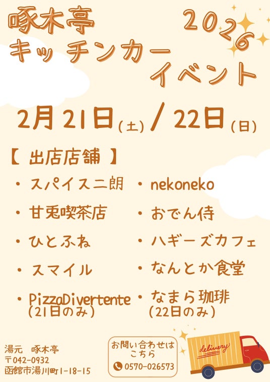 是非啄木亭にも足をお運び頂き、湯の川地区でグルメイベントを是非お楽しみくださいませ。
