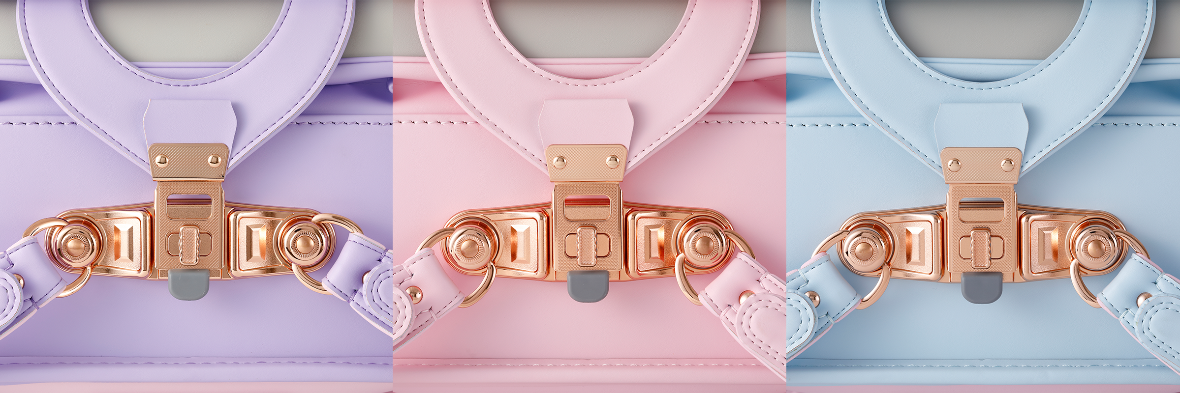 上:ライラック、左:ベビーブルー、右:パウダーピンク