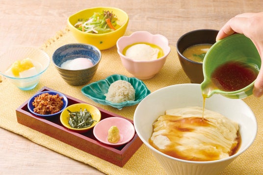 イソフラボンが1.5倍含まれる「ゆきぴりか大豆」の豆乳を使用し、出来立ての「ふく福豆冨」が味わえる定食です。卓上で火にかけるため、出来上がるまでのワクワク感とともに、出来立てならではの「大豆の甘み」「香り」「ふわとろ食感」を存分にお楽しみいただけます。