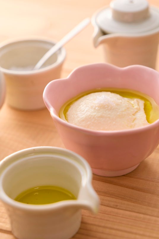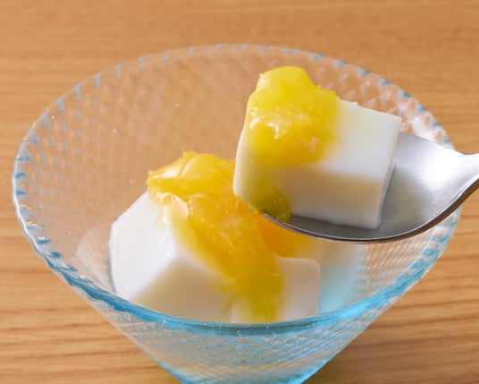 牛乳、生クリーム、葛粉などのシンプルな材料を使用し、滑らかになるまでじっくり練って作られた嶺岡豆腐。