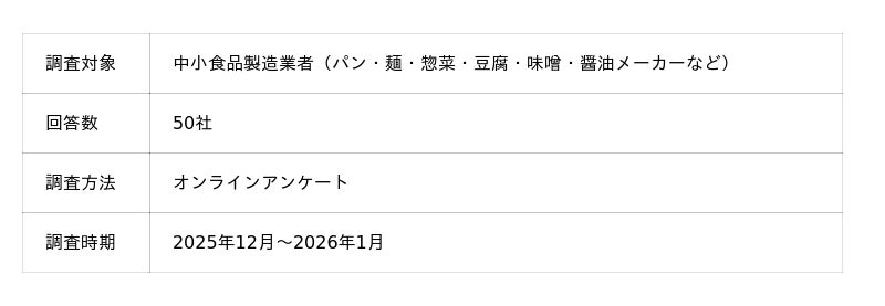 株式会社アカネサス(本社:大阪府大阪市、代表取締役:北條竜太郎)は、中小食品製造業者50社を対象に「国産原材料への切替に関する調査」を実施しました。