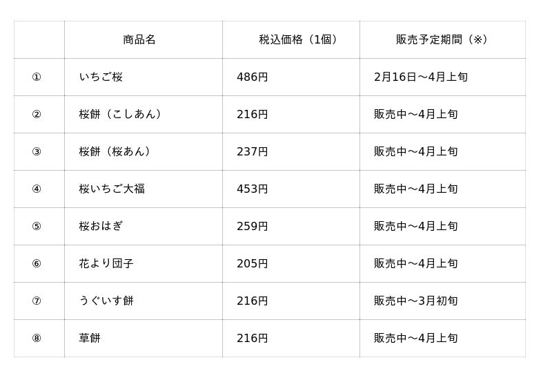 ※販売予定期間は2月12日時点。仕入れ状況や店舗によって異なる場合がございます。