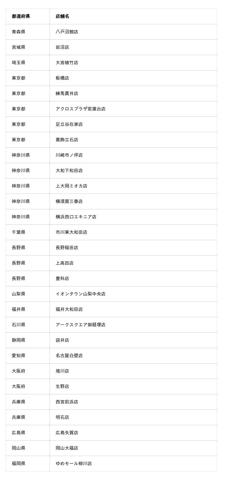 ※川崎市坪店・横須賀三春店は、一部期間改装予定があります。