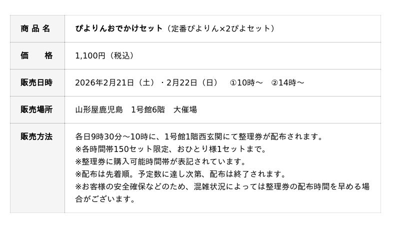ぴよりん15周年を記念して、鹿児島初出店です!会場では、人気のぬいぐるみなどのグッズや菓子類も販売されます。