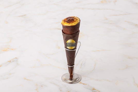 ココアのクレープに、キャラメリゼしたバナナ、カスタードとホイップ、サクサク食感のフィヤンティーヌを組み合わせた王道クレープです。