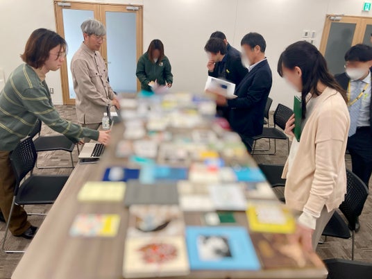 2025年1月、ライブラリーの構想を進めるにあたり、幅氏とともに双葉町役場で地域住民の方々とワークショップを実施しました。当日は、机いっぱいに並べられた本の中から、参加者が「気になった一冊」を手に取り、その理由を語り合う時間を設けました。「どんな本に惹かれるのか」「どんな本があれば読みたいと思うのか」といった対話を通じて、参加者それぞれの思いや関心を共有し合いました。こうした声は、今後の選書や空間づくりに活かしていきます。