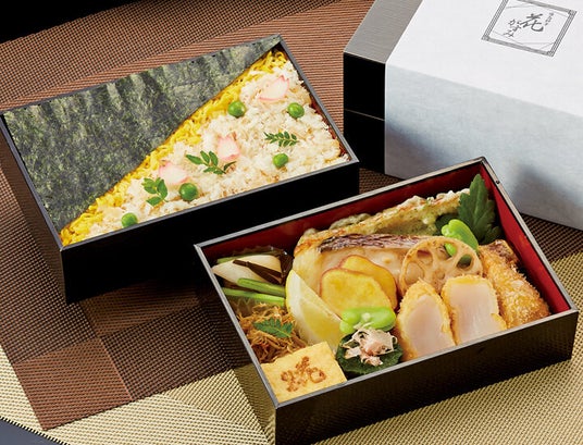 真鯛の西京焼きを主役に、筍や烏賊のフライ、春らしい彩りを添える空豆や花びら百合根など、季節になぞらえた旬の食材をふんだんに使用。二段重の構成で、味わいだけでなく見た目にも春の息吹を感じていただけます。海苔御飯には鯛そぼろや錦糸玉子をあしらい、最後の一口まで上品な余韻をお楽しみいただける仕立てです。