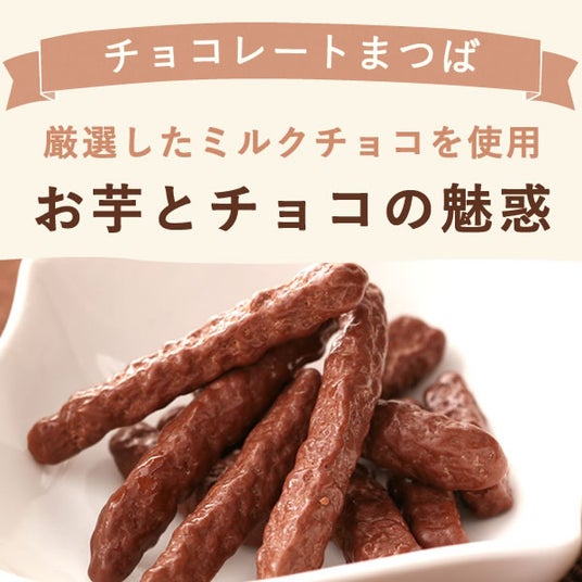 甘酸っぱい林檎のコンポートが隠し味の林檎スイートポテトと、カリポリ触感がたまらないチョコレートがけ芋まつばのセット。お芋の魅力がぎゅっと詰まったロングセラー商品です。