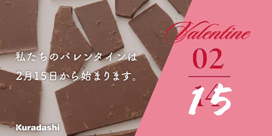 ソーシャルグッドマーケット「Kuradashi」を運営する株式会社クラダシ(本社:東京都品川区、代表取締役社長CEO:河村晃平、以下「クラダシ」)は、世の中のバレンタイン商戦が落ち着く2月15日(日)より4日間限定で、製造過程で発生する「割れチョコ」などの規格外品にスポットを当てた特集「私たちのバレンタインは2月15日から始まります。」を開催いたします。