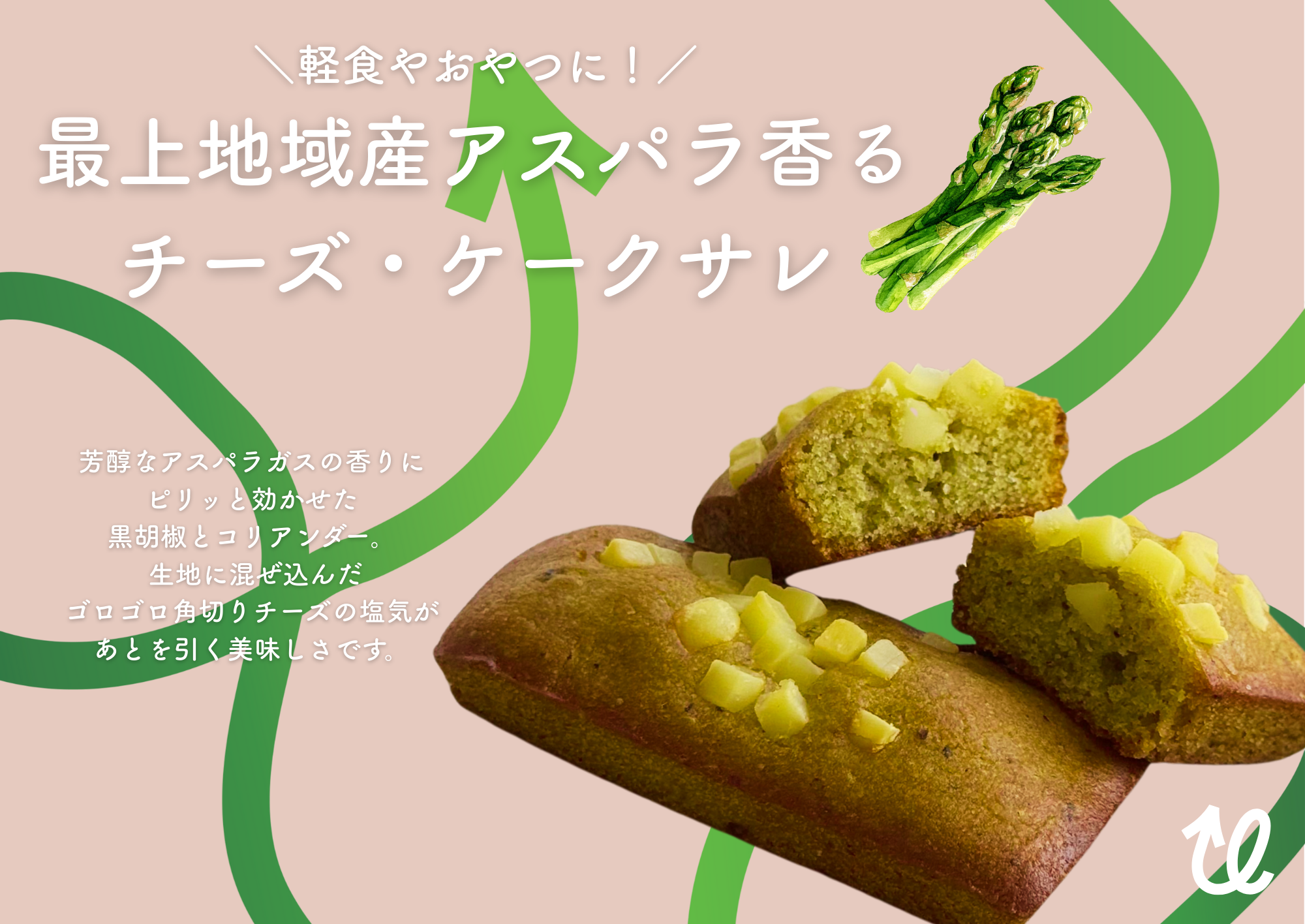 しっとりと焼き上げた、食べ切りサイズの本格派ケークサレです。アスパラガスの芳醇な香りに、ピリッと効かせた黒胡椒とコリアンダーがアクセント。生地にゴロゴロと混ぜ込んだ角切りチーズの塩気が後を引く、ワインのお供やおやつにもぴったりな「おつまみ系」焼菓子に仕上げました。