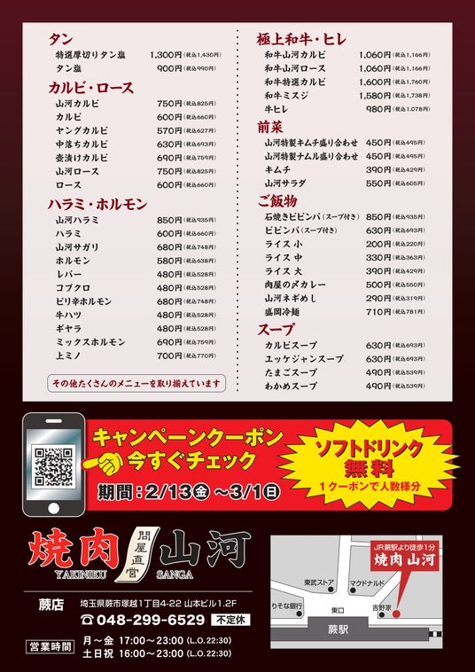 ■店舗名:焼肉山河 蕨店(わらびてん)■オープン日:2026年2月13日(金)17:00