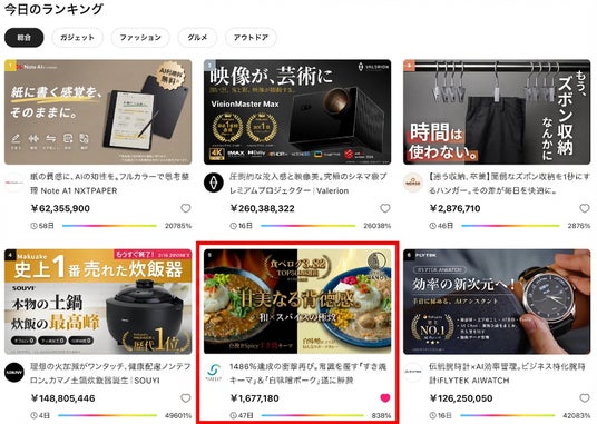 - Makuake総合ランキング:5位