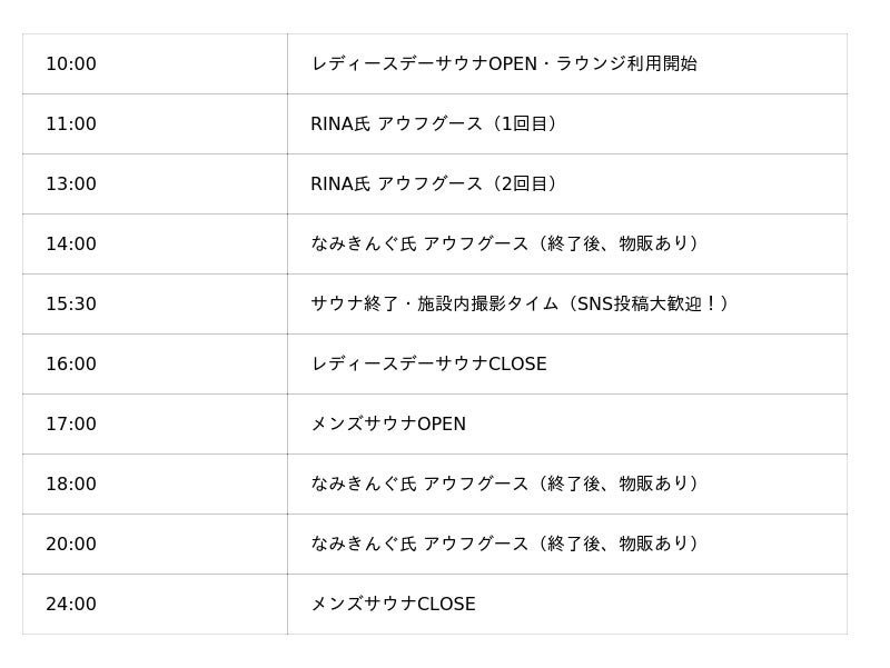 なかでもレディースデーは、普段は男性専用のサウナ空間を女性向けに開放する特別な取り組みとして、前回の初開催時にも非常に高い反響を得ています。