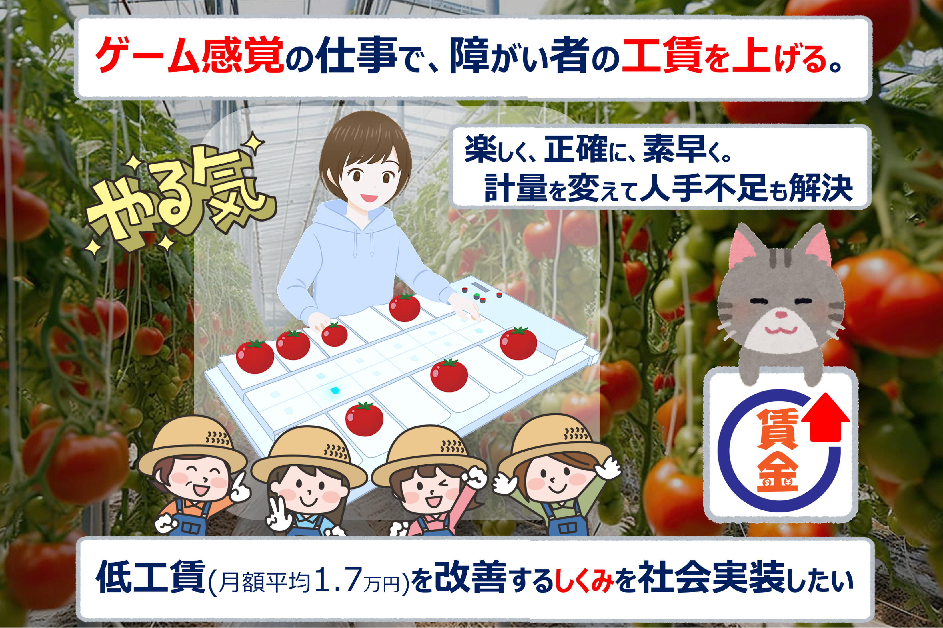 この仕組みを、全国の農業法人、パックセンター、JA集荷場、食品工場へ広げ、障がい者が「戦力」として働き、成果が正当に評価される現場を増やしたい。