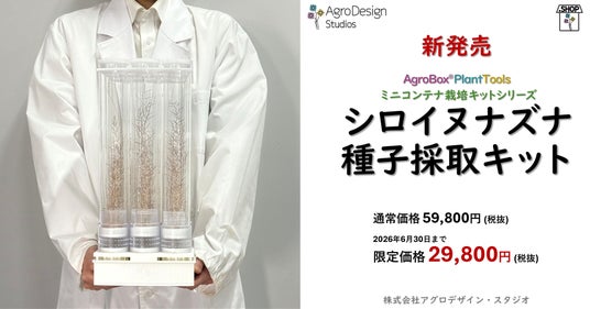 アグリテック系スタートアップの株式会社アグロデザイン・スタジオ(本社:千葉県柏市、代表取締役社長:西ヶ谷有輝、以下アグロデザイン)は、植物工場や実験室内における遺伝子組換え作物やゲノム編集作物の栽培に最適な局所密閉タイプの栽培容器である『AgroBox(R) PlantTools ミニコンテナ栽培キットシリーズ』を開発しました。今回、シリーズ第一弾としてシロイヌナズナ種子採取キット」を発売いたします。本製品は、植物科学の実験に欠かせないモデル植物であるシロイヌナズナ(Arabidopsis thaliana)の栽培と種子採取をコンパクトな密閉容器の中で行うことを可能にしました。