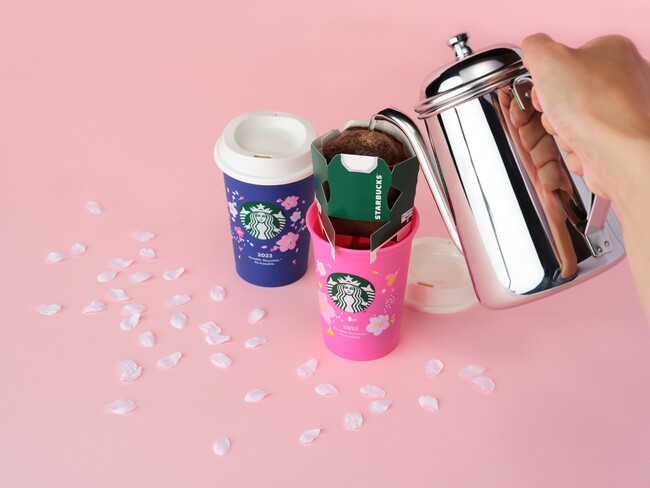 2023年は3年ぶりにパッケージデザインを一新し、春の訪れを祝う、満開の桜の花びらが特徴のデザインとなりました。自宅やオフィスで手軽に楽しめる家庭用製品として「スターバックス オリガミ(R) パーソナルドリップ(R) コーヒー」「レギュラーコーヒー(粉)」の2タイプを発売するとともに、「スターバックス オリガミ(R) パーソナルドリップ(R) コーヒー スターバックス(R) スプリング ブレンド」1袋と「リユーザブル カップ」がセットになった製品も発売します。