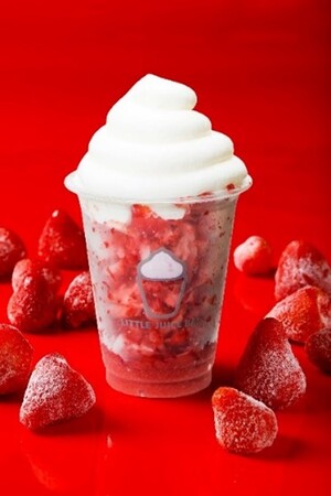 いちごけずり(R)のオリジナルショップ。1番人気の「いちごけずり(R)」(写真)は、いちごを丸ごと削った新食感のデザートです。野菜ソムリエ厳選のフルーツを使用したオリジナルドリンクメニューを中心に、観戦中に手軽にフルーツを楽しめるラインナップが勢ぞろい。