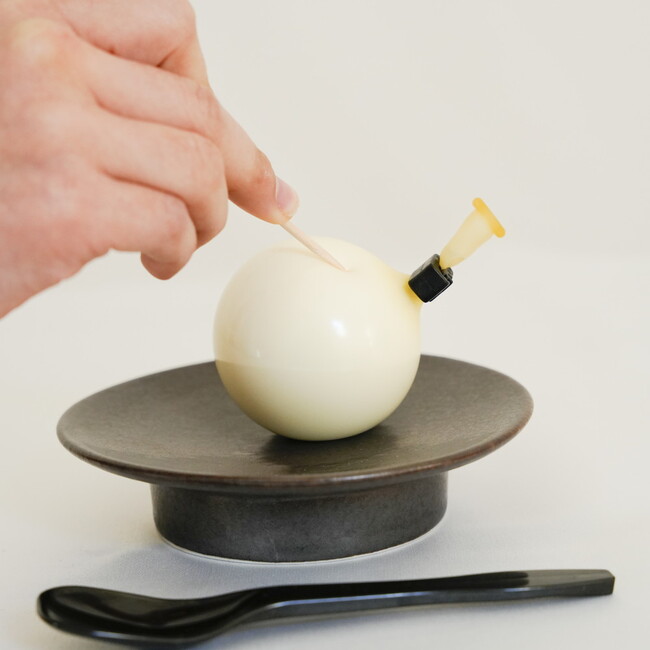 風船の中にプリンが入っているので、爪楊枝でプチッと割ってそれぞれの素材に合わせた特性のみつをかけてお召し上がりください。プリンが出てくる瞬間のドキドキ感は、まるで子供の頃に戻った気分。家族や友達と一緒に楽しむと大盛り上がりします。