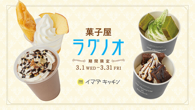 株式会社SHIBUYA109エンタテイメント(本社:東京都渋谷区/代表取締役社長:石川 あゆみ)が運営する「IMADA KITCHEN(イマダ キッチン)」にて、株式会社ラグノオささき(本社:青森県弘前市/代表取締役社長 : 木村公保)が運営する「菓子屋ラグノオ」が、2023年3月1日(水)~2023年3月31(金)の期間限定で出店いたします。