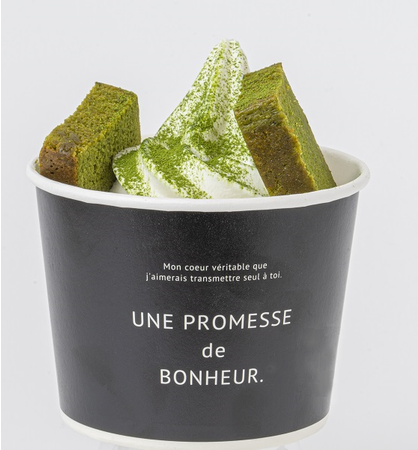 「ポロショコラ・抹茶」にコクのあるソフトクリームを絞り、抹茶パウダーをかけました。