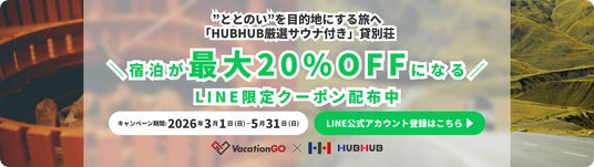 本プロジェクトでは、HUBHUB会員34,000名超に向け、SOZONEXTが運営する「VacationGO」掲載施設の中から、HUBHUBが認定したサウナ付き別荘を厳選し、LINEを通じて特別割引や会員限定特典を提供します。
