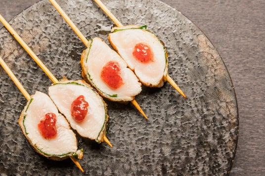 軽やかな食感と清涼感のある風味のバランスが絶妙で、コースの合間にも心地よく楽しめる味わい。特に女性のお客様から高い支持を集めている人気串です。