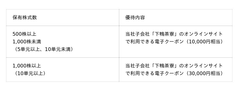 当社は、株主の皆様への利益還元を重要な経営課題と位置づけています。本制度の導入により株主還元の拡充を図るとともに、グループブランドである下鴨茶寮の価値をより多くの方に体験いただく機会を創出してまいります。