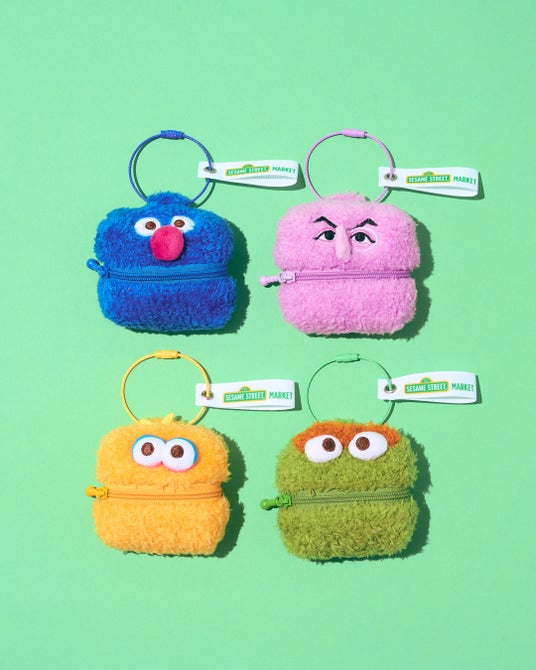 エルモ、クッキーモンスター、アビーをモチーフにした、日常に寄り添うポップでカラフルなデザインのアイテムが新たに登場します。第1弾で大好評を博したイヤホンポーチは商品化を望む声にお応えし、ビッグバード、オスカー、グローバー、カウント伯爵が新たに仲間入り。そのほか、キャラクターがちょこんと座ってスマホを支えてくれるようなユニークで愛らしいフォルムが特徴のぬいぐるみスマホスタンドや、PVCショルダーポーチ、マルチギャザーストラップ、シリコンブレスレット、スライドミラーなど、デザイン性と実用性を兼ね備えたラインアップを取り揃えました。