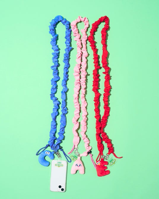 エルモ、クッキーモンスター、アビーそれぞれの名前の頭文字“E”、“C”、“A”の形をしたクッションチャームがユニークなアクセントになったマルチギャザーストラップ。ストラップは長さ調節や取り外しが可能で、用途やスタイリングに合わせて自由にお使いいただけるほか、お手持ちのバッグなどに付け替えてお好みのアレンジをお楽しみいただけます。