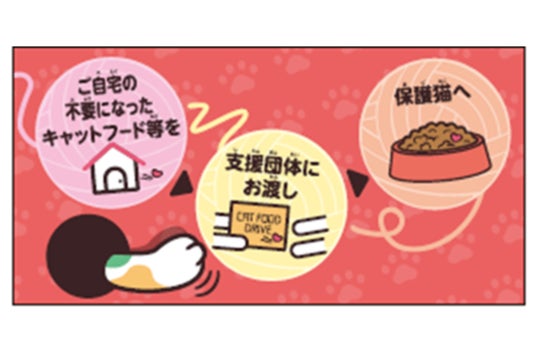 今回は、猫の日に合わせ、お客様のご家庭の未使用キャットフード等を店舗で回収し、支援団体を通じて必要としている方々へお届けする「キャットフードドライブ活動」を初めて実施します。