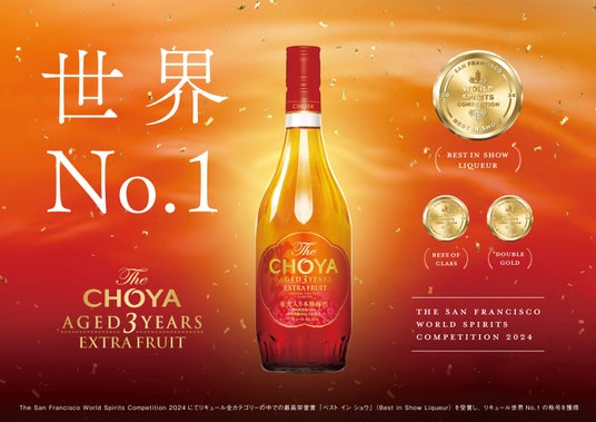 また、2024年度に国際的な酒類品評会「The San Francisco World Spirits Competition」(サンフランシスコ・ワールドスピリッツ・コンペティション、以下SFWSC)にてリキュール世界一の称号である最高栄誉賞「ベスト イン ショウ リキュール」(Best in Show Liqueur)」を受賞した本格梅酒「The CHOYA AGED 3 YEARS EXTRA FRUIT(以下EXTRA FRUIT)」の販売も数量限定で行います。