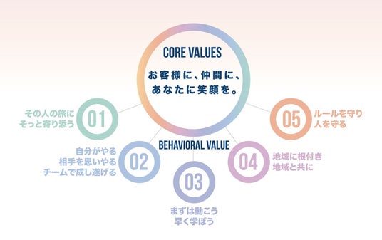 - コアバリュー 「お客さまに、仲間に、あなたに笑顔を。」
