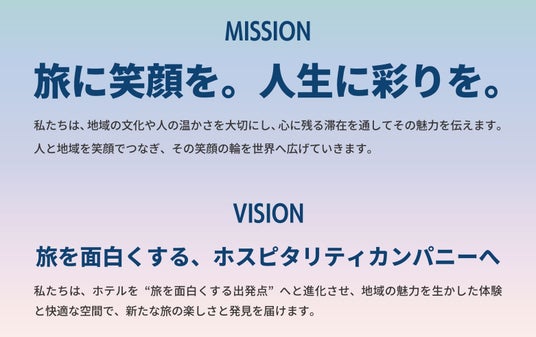 - ビジョン 「旅を面白くする、ホスピタリティカンパニーへ」