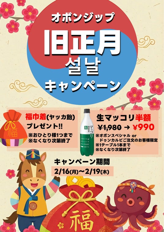 オボンジップではこのソルラルに合わせ、2月16日(月)~2月19日(木)に