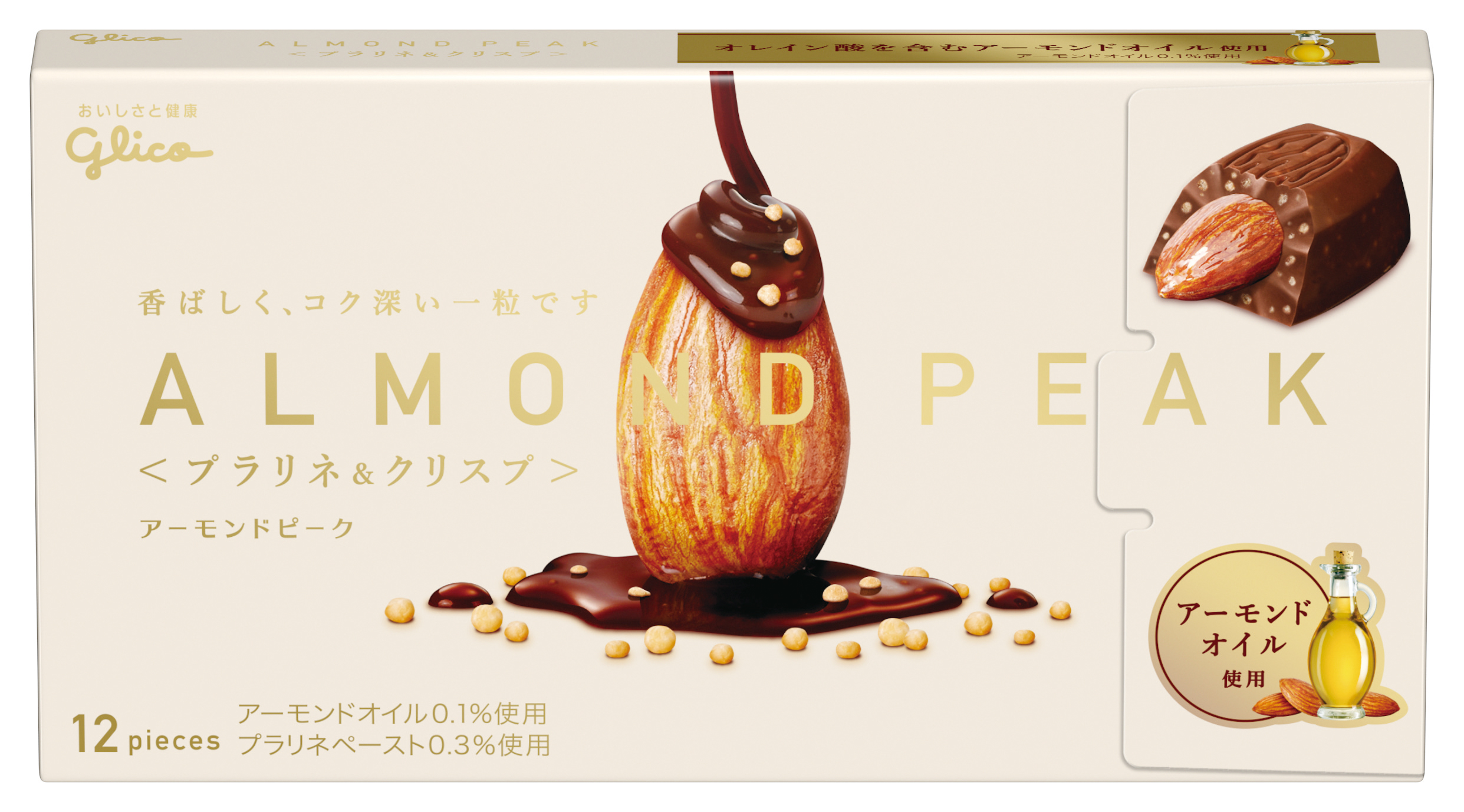 江崎グリコ株式会社は、2021年9月21日(火)に、2011年に発売した「アーモンドピーク」の初めてとなる大幅リニューアルを実施します。アーモンドを丸ごと搾って抽出した「アーモンドオイル」を新たに加え、「アーモンドピーク」1粒にアーモンド2粒分のビタミン E を新配合しました。さらにチョコレートには、焦がしミルクを加え、ミルクの芳醇な味わいを実現。健康価値に着目しながら、おいしさを追求した新しいアーモンドチョコレートを提案します。