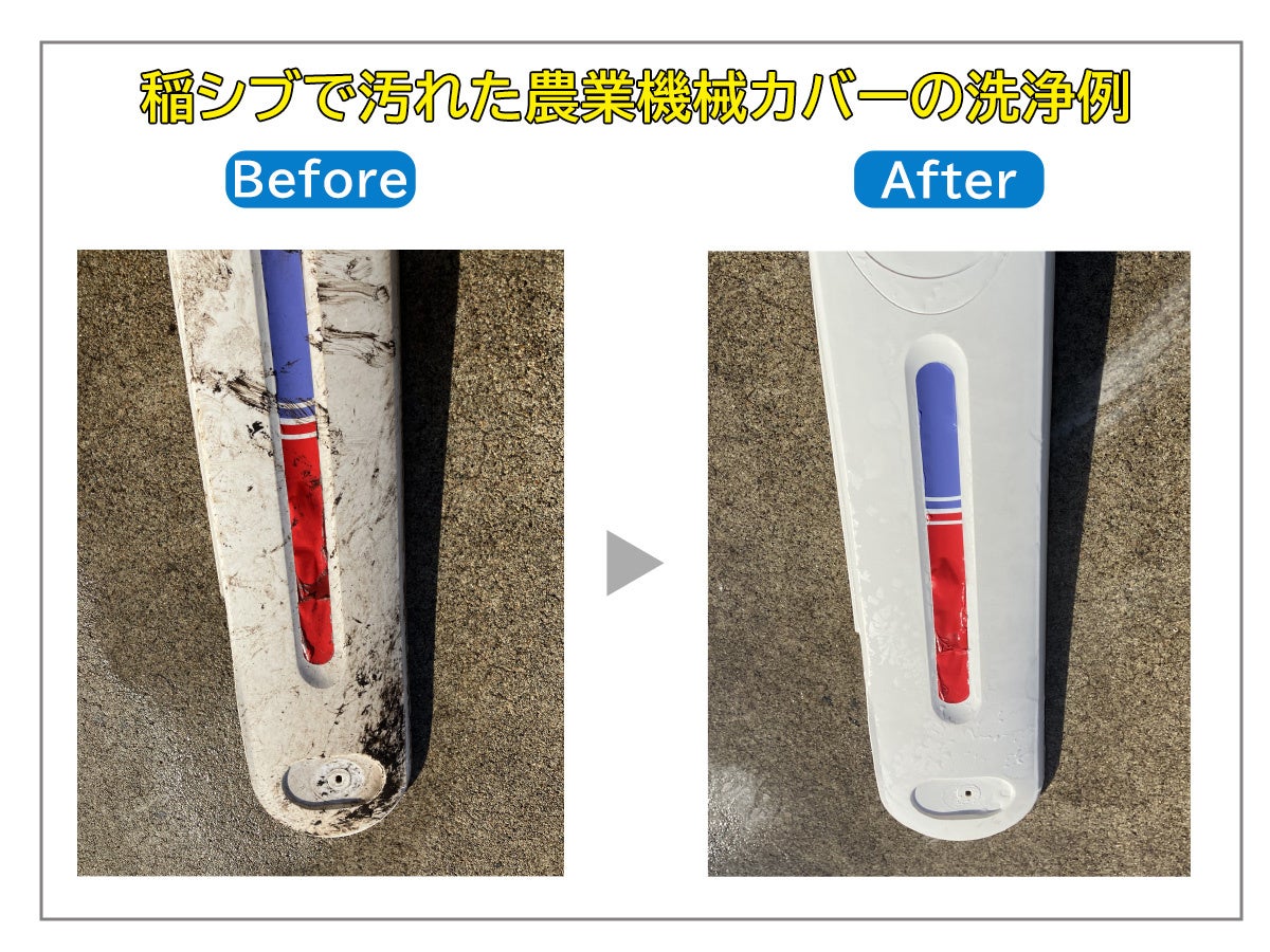 こうした背景を受け、日本メカケミカルでは、工業分野で培ってきた洗浄技術を応用し、農業機械特有の汚れに対応した専用洗浄剤「シブクリアエース」を開発しました。